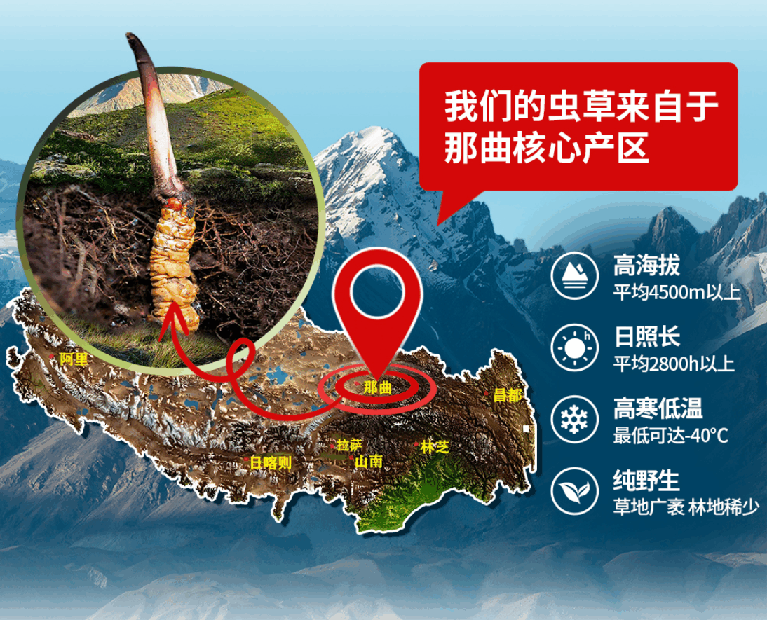 我们承诺,绝不会有人工草、低海拔虫草、假草,我们珍惜大自然的资源,更感恩大自然的馈赠,始终坚持每一根虫草都来自西藏那曲!