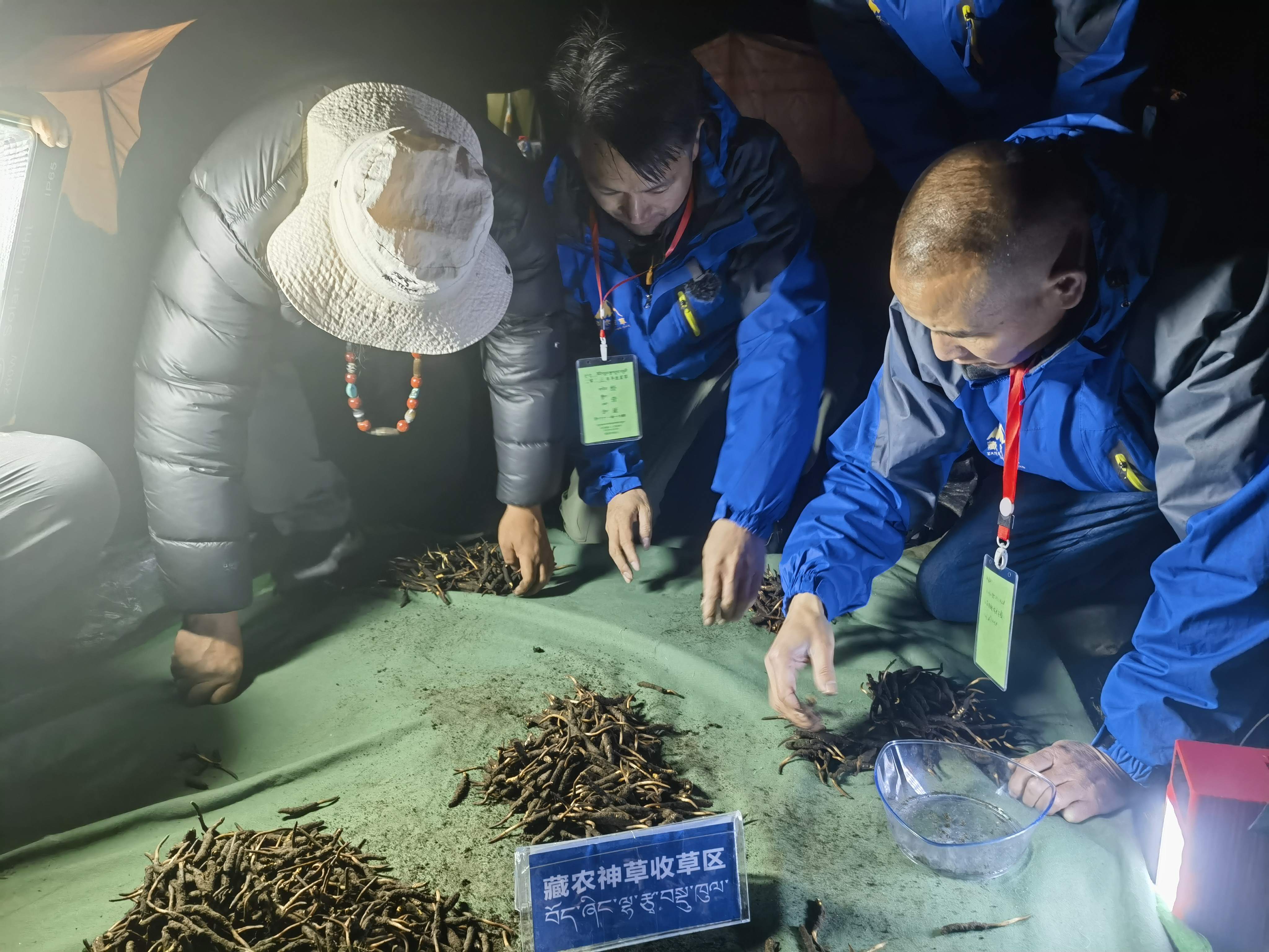 现场采收虫草,挑灯夜战,不畏艰辛!