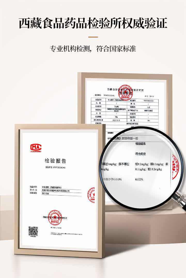 藏民自挖的冬虫夏草每一根都是品质优良并保证新鲜,每一份虫草也会有西藏自治区食品药品检验所质检报告